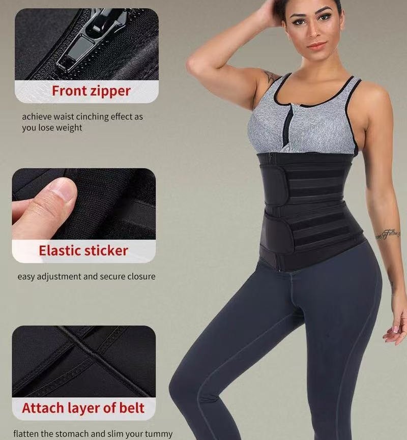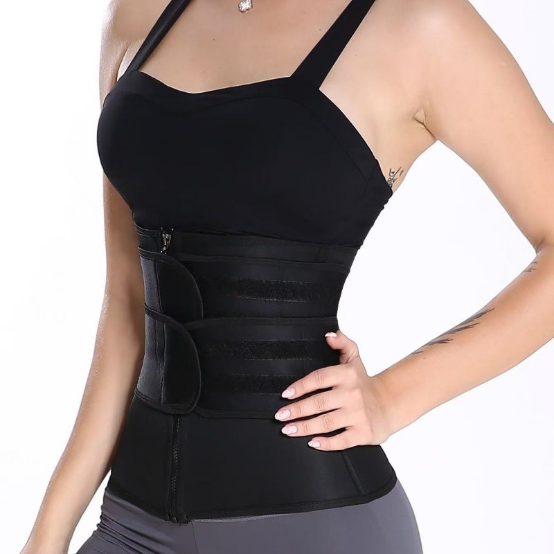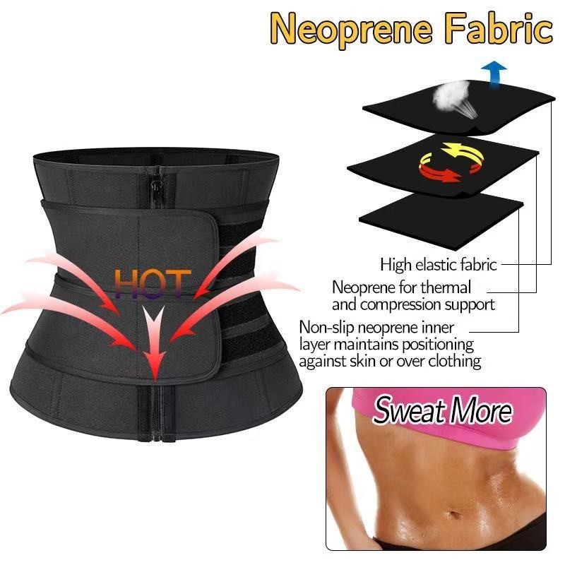 Waist trainer, sweat-inducing postpartum shaping double waist belt with zipper, tummy control belt